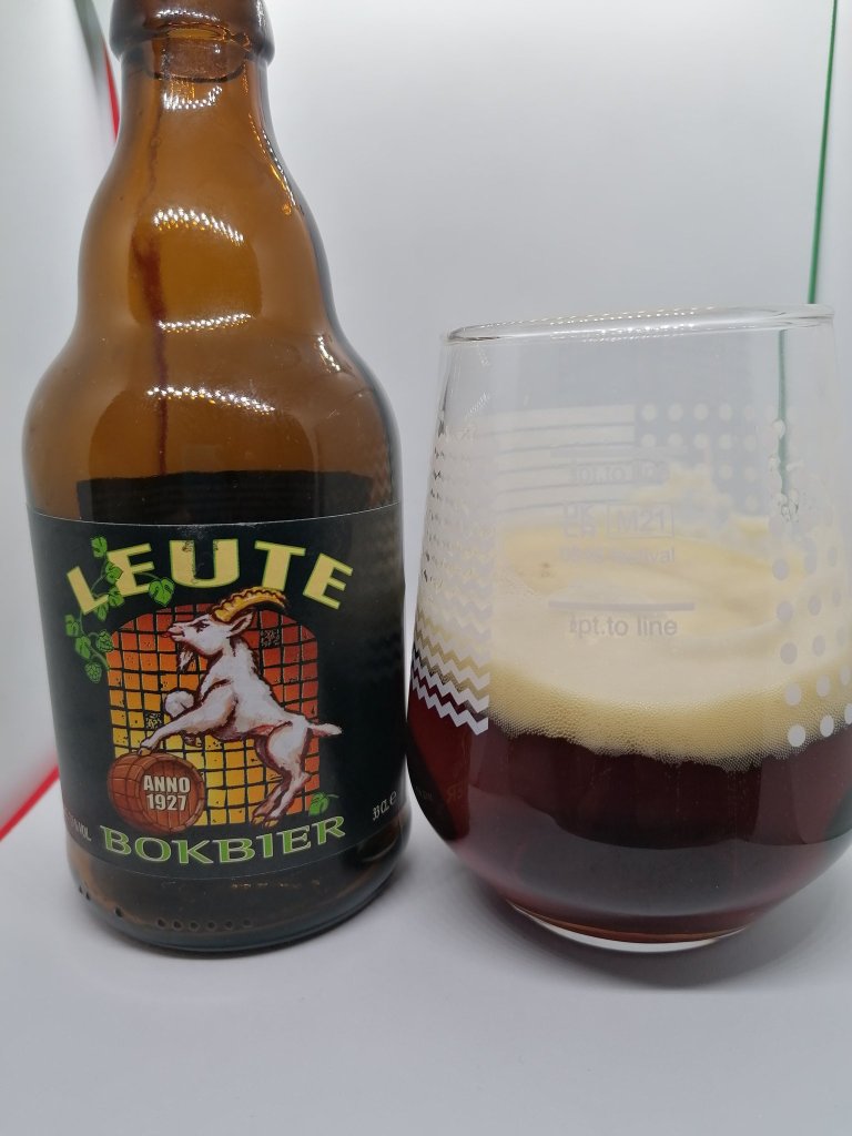 Leute Bokbier is served in a special tumbler glass with its own wooden base. The Belgians do like to make an event out of drinking a beer!