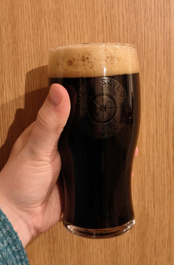 We cracked open the paper like nervous first-daters and poured her gently into our Jolly Sailor glass. She arrived fashionably late, dark, velvety, and rocking a mocha-coloured head that screamed “I’ve got stories.” Safe to say… she cleans up very well.